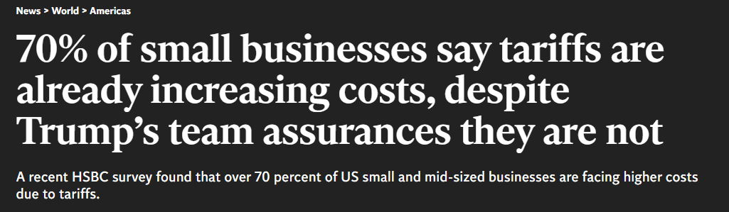 中国日报网5月30日电 据英国《独立报》网站28日报道,汇丰银行(HSBC)的一项最新调查显示,受特朗普政府关税政策影响,72%的美国中小企业被迫增加运营成本,77%的企业预计到今年年底其成本还会进一步上涨。