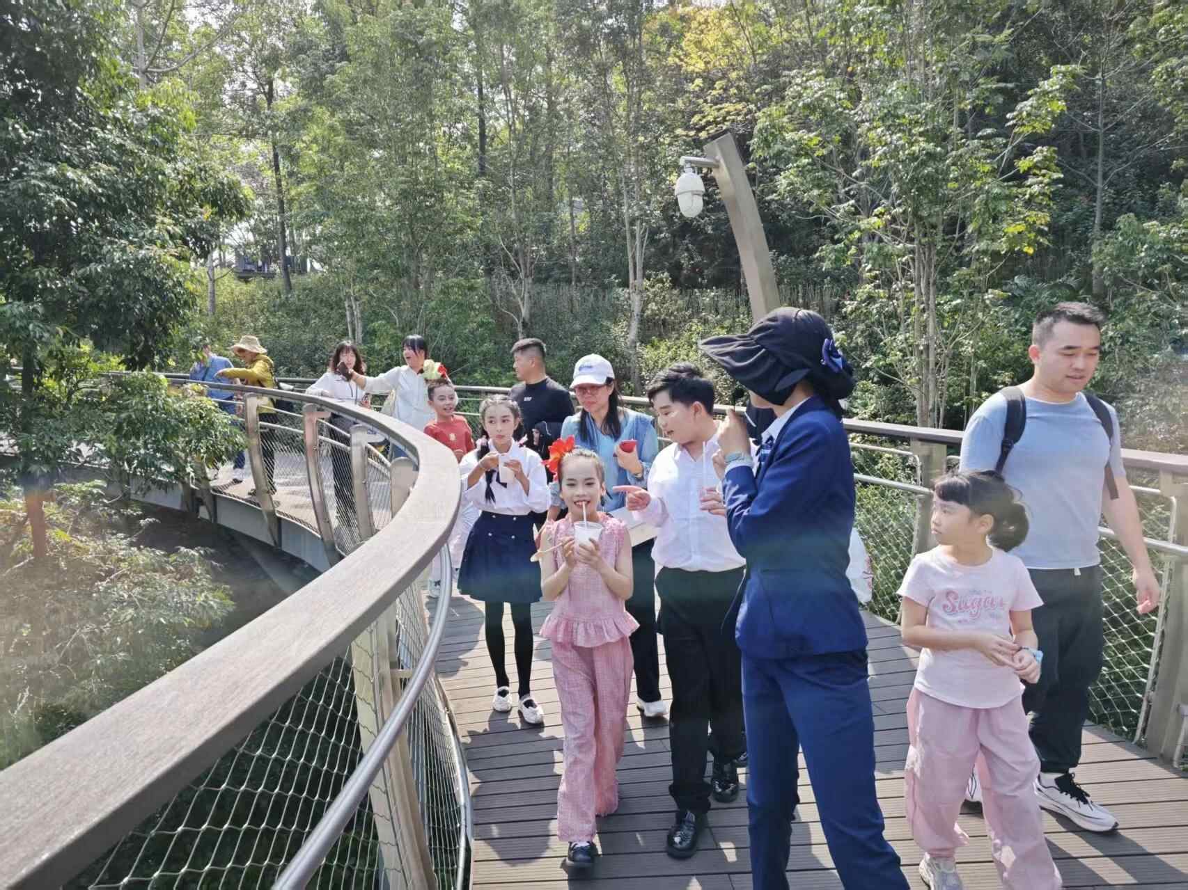 科普类活动是亲子家庭假期的热门选择。广州动物园推出“一图一故事,野保小卫士”守护野生动物故事征集比赛决赛、“童梦奇‘猿’”系列活动,涵盖动物宝宝导赏、黑猩猩生日会、食物丰容展示等,让游客近距离观察动物生态,进一步增强青少年野生动物保护意识。