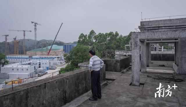刘永广站在澳洲山庄楼顶,远看着旁边正在修建的安置房项目。