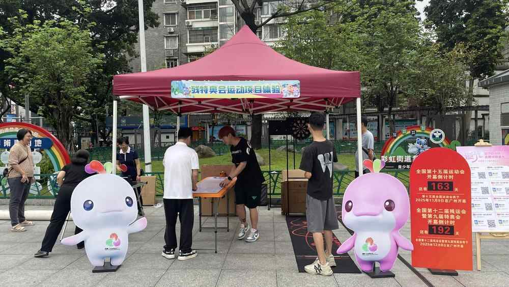 残特奥运动项目体验区热闹非凡,旱地冰壶、乒乓球、飞镖等项目吸引了市民参与。