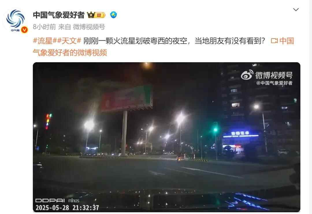 不久后,@中国气象爱好者 发文称,一颗火流星划破粤西的夜空,当地朋友有没有看到?