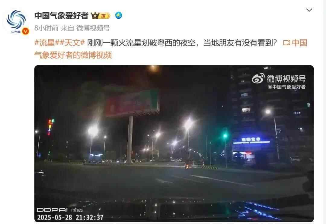 5月28日晚间,多名IP定位在广东的网友发视频称,茂名的天空疑似有什么东西落下,一下子天空都亮了,不久还伴有巨响。