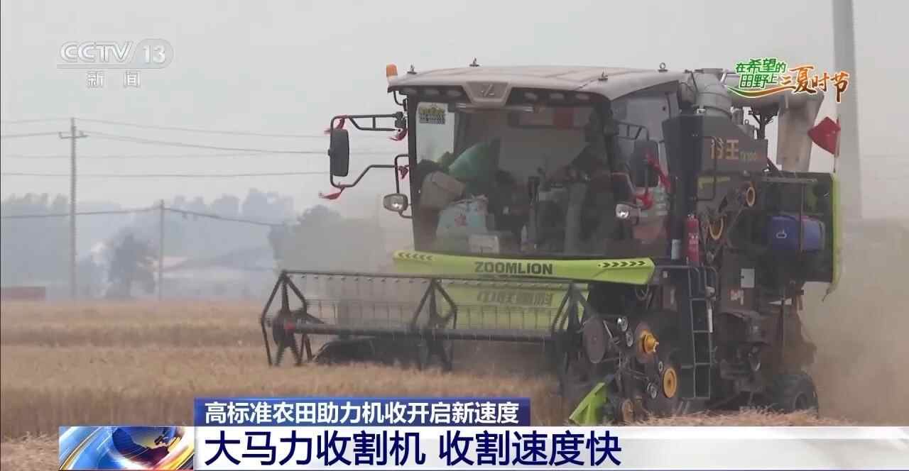 三夏期间,总台记者在一线采访时,都会有个非常强烈的感觉:田野里奔跑的农机越来越大,种类也越来越多,从每秒收割量达到10公斤、12公斤的大马力收割机,到秸秆打捆机、旋耕机,都在提升夏收的速度。