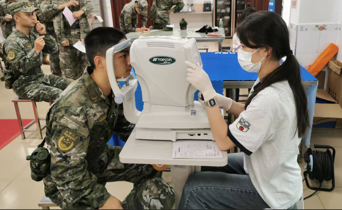 当日15时,三台医疗车携带专业医疗设备驶进部队营区,活动现场,白衣天使们正有条不紊地操作专业设备为部队官兵提供口腔全景扫描、口腔黏膜疾病初步筛查、常规视力检查、眼底健康评估、测量血压、测骨密度等检查,现场氛围浓厚,部队官兵整齐列队依次参加各个义诊项目。活动中,医护人员针对常见口腔溃疡、运动性眼外伤问题,牙科医生讲解科学刷牙和牙线使用方式,眼科专家现场演示护眼操,普及口腔卫生、爱眼用眼和眼疾防控常识,拥军爱心医院还向官兵赠送了全家口腔、眼健康免费检查套券、口腔健康口护礼包、热敷眼罩、艾草养生锤等慰问品。
