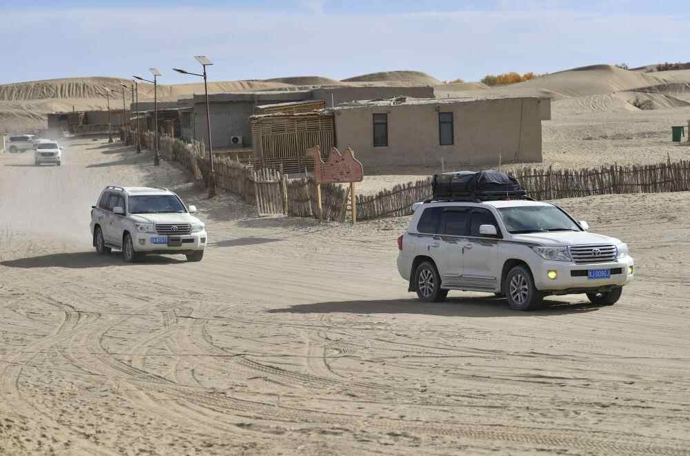 自驾游客开车行驶在新疆于田县达里雅布依旧址景区(2024年11月6日摄)。新华社记者 胡虎虎 摄