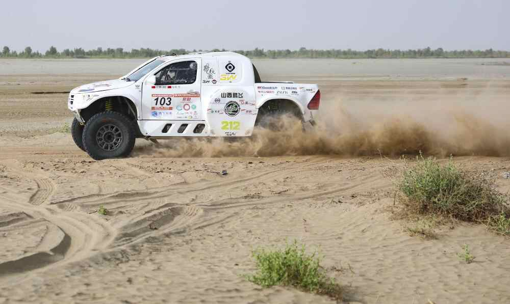2025年5月26日,韩魏汽车运动车队车手韩魏、领航员马利驾驶赛车在比赛中。新华社记者 胡星宇 摄