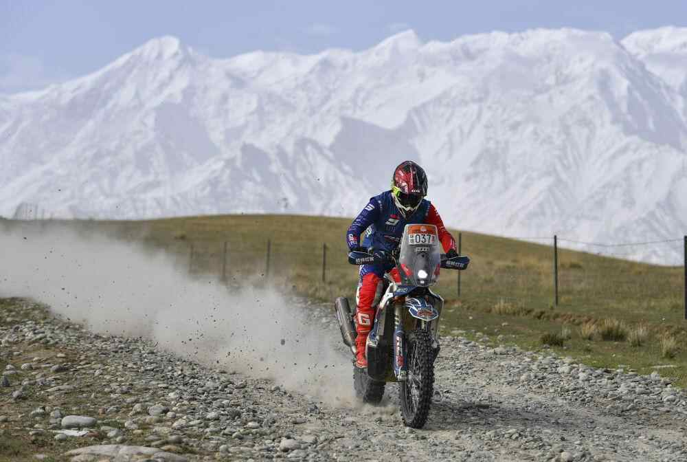 2025年5月26日,鼎新铜业沸铁拉力车队车手赵雷在比赛中。当日,2025中国环塔国际拉力赛进入第五赛段。新华社记者 辛悦卫 摄