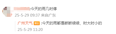 有网友问“今天的雨几时停”,@广州天气回应称:今天的雨都是断断续续、时大时小的。
