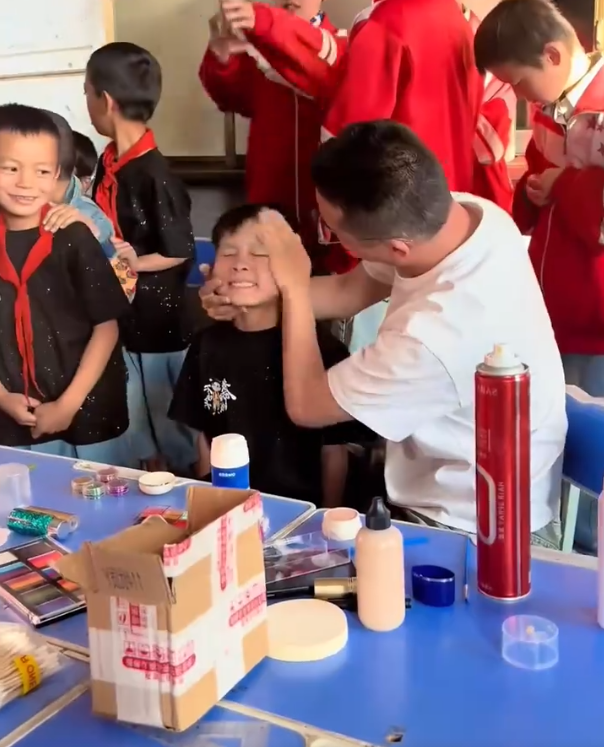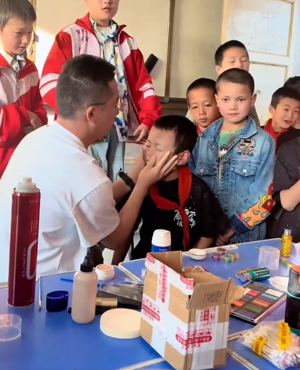 近日,甘肃兰州一所学校内,男老师为学生们快速化妆的视频火了,“儿童节化妆师不够男老师一分钟化10个小演员”。