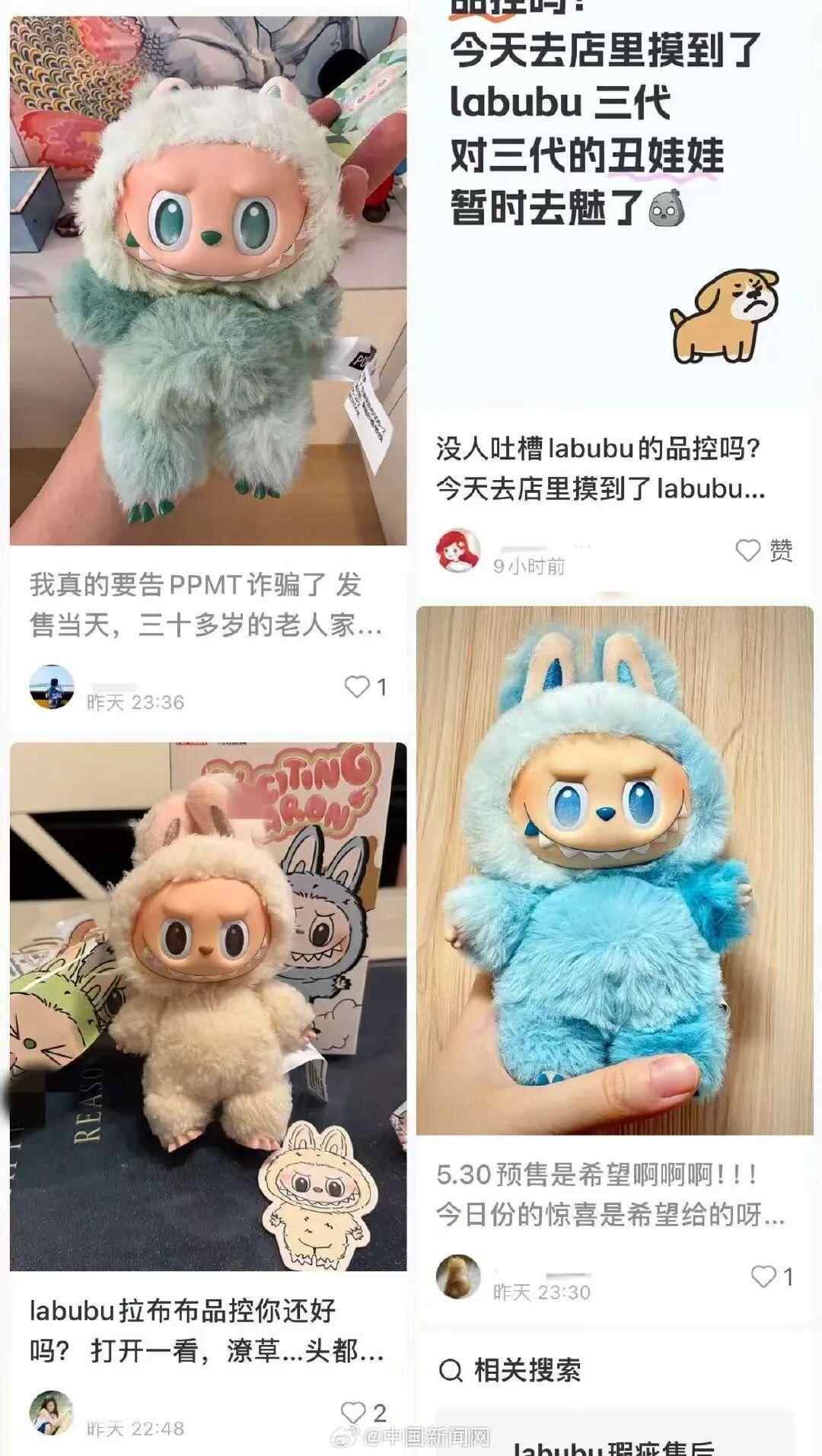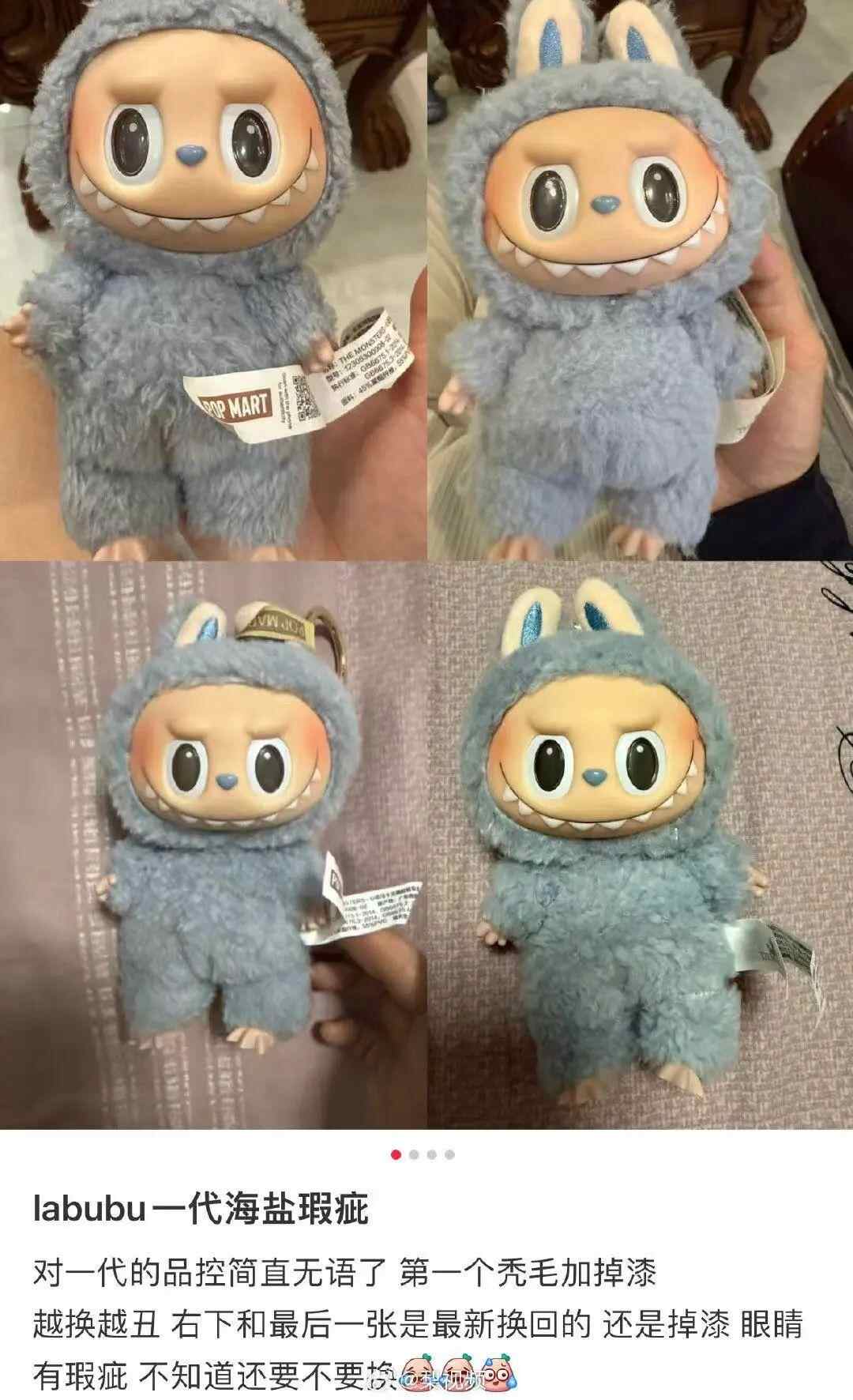 与此同时,有网友反映收到的Labubu出现品控问题。在某社交平台上,“labubu品控差”有超1200条相关笔记。有不少消费者反映收到的Labubu出现歪头、掉漆、开线、秃毛等不同的品控问题。