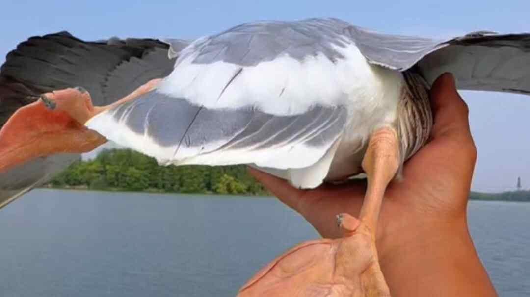 武汉东湖还可以“撸雁”?男子摸大雁肚子惊呼比棉花还软