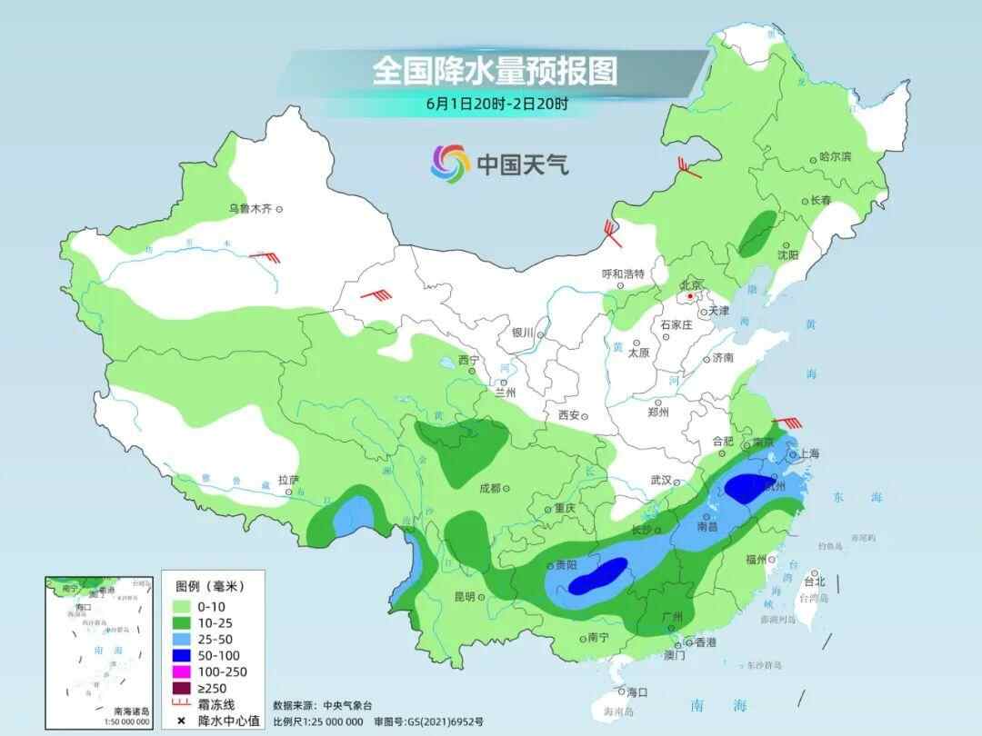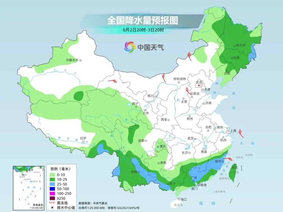 6月2日至3日,降雨有所减弱,主雨带东移南压至江南南部、华南、西南地区东南部,上述地区将有中到大雨。