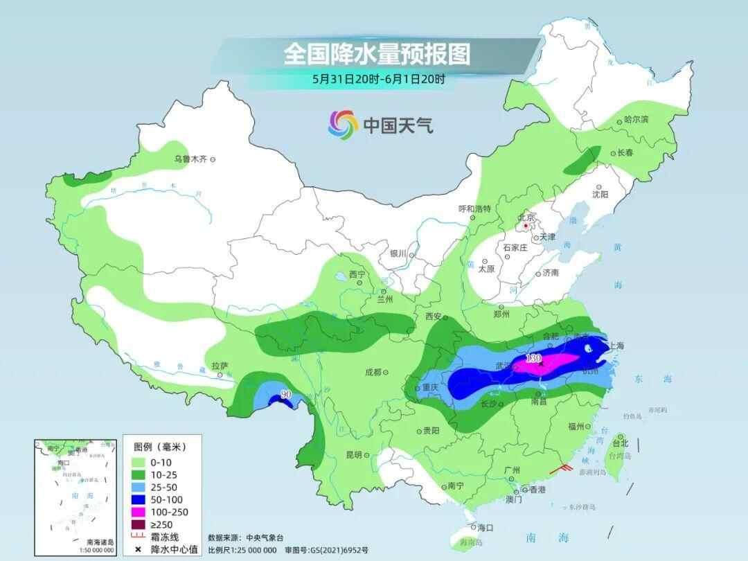 预计,5月31日至6月1日(端午假期前两天),长江中下游沿江雨势最强,其中5月31日,江汉、江淮、江南北部等地有中到大雨,湖北东部、安徽西南部、江西北部等地有暴雨、局地大暴雨。
