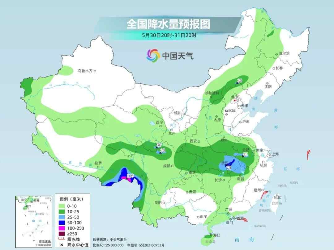 首当其冲的是西藏东南部和云南西部等地。季风低压引导西南季风北上,叠加地形抬升,上述多地会有大到暴雨、局地大暴雨,降雨最强的时段会是在明天(30日)。
