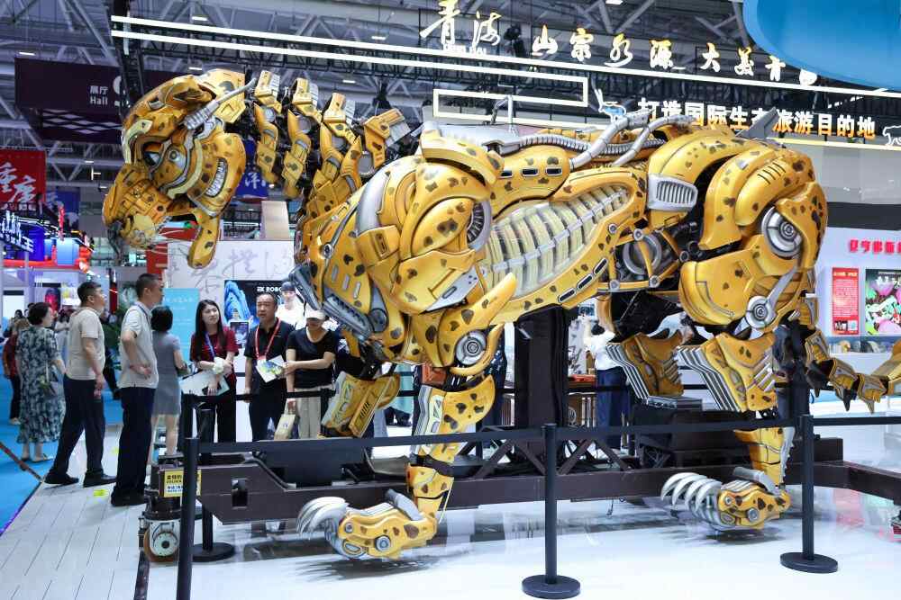 5月23日,在文博会现场,机器人表演弹古筝。本届文博会突出“文化+科技”深度融合,首次设立人工智能展区,众多文化“顶流”和科技“新势力”齐聚现场,为观众带来新鲜有趣的参观体验。新华社记者 梁旭 摄