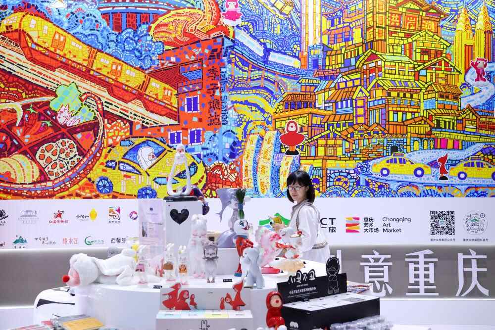 5月22日,观众在文博会重庆展区挑选盲盒产品。 新华社记者 肖恩楠 摄