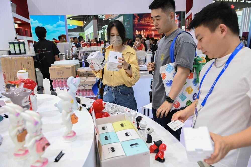 5月23日,人们在文博会“文创中国”展区选购文创产品。新华社记者 梁旭 摄