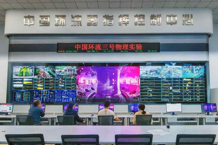 科研人员在位于四川成都的指挥控制中心监测“中国环流三号”物理实验情况(2024年11月4日摄)。新华社发(何淑芳 摄)