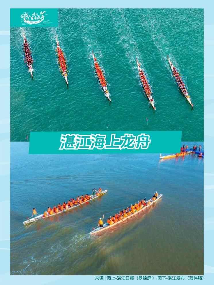 海上赛龙舟,多支龙舟队伍参与竞技,还有陆上龙舟趣味赛