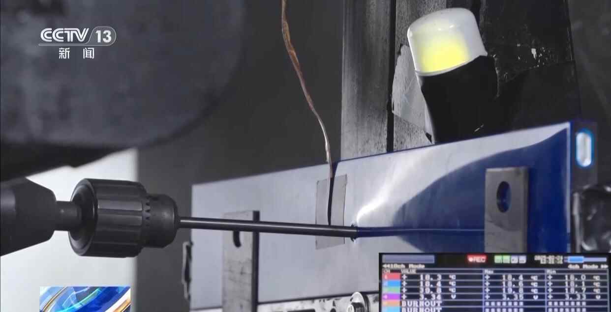 总台央视记者 罗宏进:在电池包的针刺试验中,我们可以看到,这个5毫米钢针将以每秒1毫米的速度刺向目标电芯,大约经过50秒的时间,目标电芯将被刺破。
