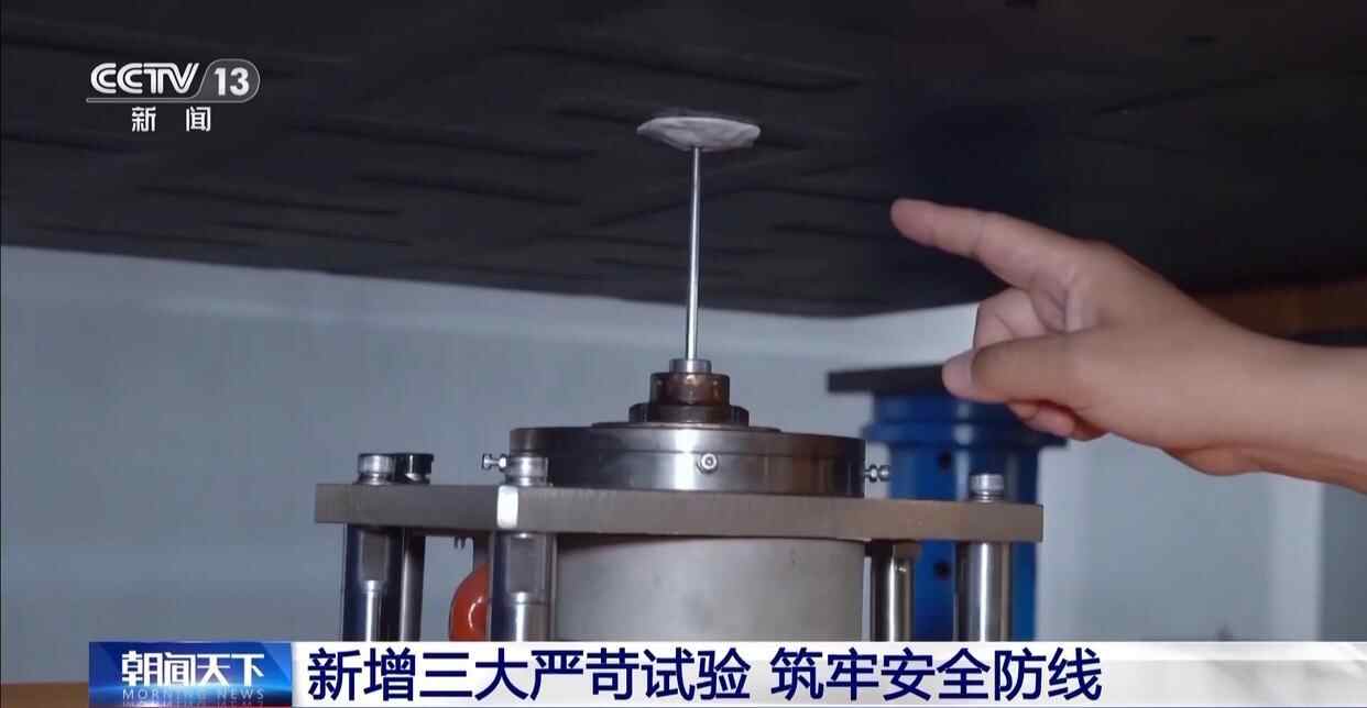 总台央视记者 罗宏进:这里是电池包底部安全碰撞试验的现场,在试验当中30毫米的钢制撞击头,将以150焦耳能量撞击电池包上面的风险点,像这样的风险点在电池包底部共选取了前、中、后三处。