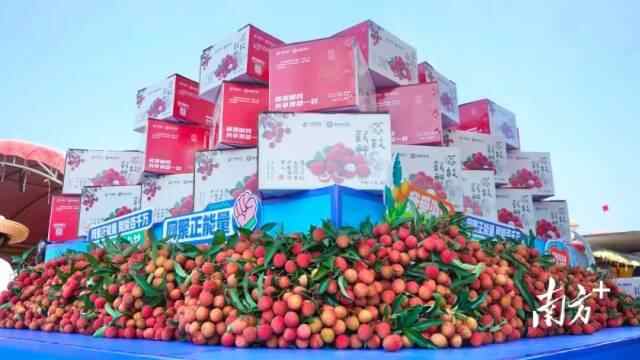 在锣鼓喧天里闪亮登场的醒狮队伍表演中,活动现场发出招募令吸引全场达人扫码参与。随后,达人置身红果压枝的荔枝园里带领网友云端逛荔园、直播带货,全网种草清甜、早熟、不上火的“仙品荔”,当日吸引全国各地荔枝采购商106家销售250万斤。