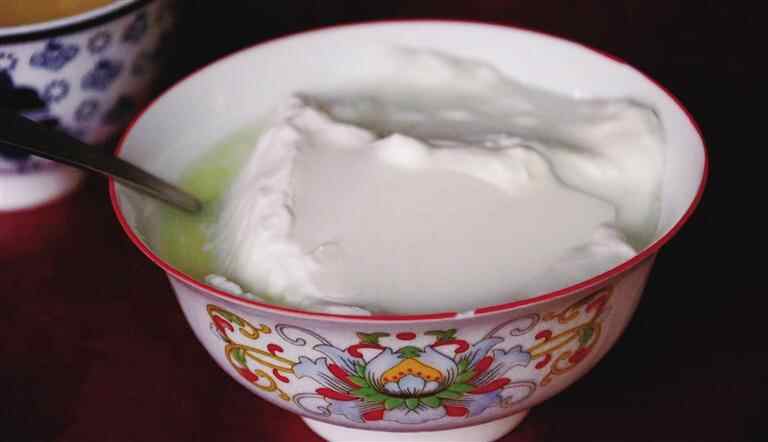 除了常规的高蛋白大餐,西藏还有许多特色美食,酸奶拌饭便是夏日爽口美食之一。酸奶带着牦牛奶独特的鲜味,提炼后形如“豆腐脑”,白嫩滑溜,口感微酸与微甜交织,令人身心愉悦。在藏族世代延续的饮食文化中,酸奶拌饭因其丰富的营养价值,深受人们喜爱。