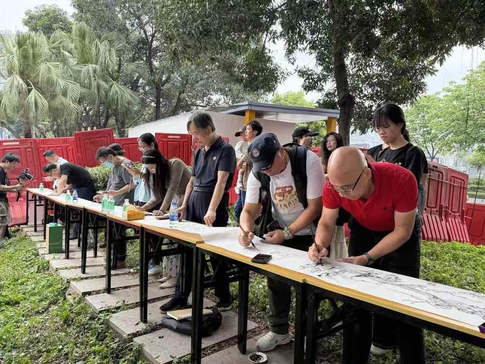 画家们还以深涌为轴,接力创作10米长卷,将龙舟竞渡、榕荫古祠、市民喝彩等多元场景熔铸其中。