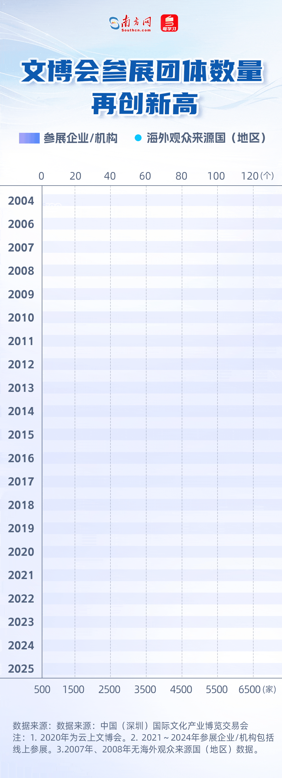 历经21载时光,国内的文化企业/机构不断激增,文博会参展团体由首届的700家到今年6280家;国际影响力持续扩大,海外观众来源国从首届从10个到今年110个。文博会场内,多样文化彼此碰撞、激荡共生,奏出新颖动听的文化交响乐。