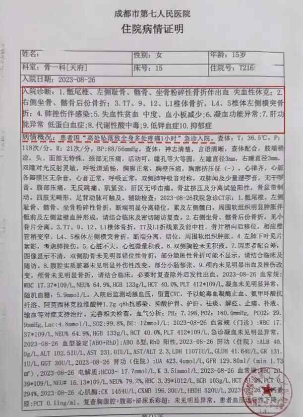 15岁少女陪侍醉酒后坠楼致全身多处骨折
