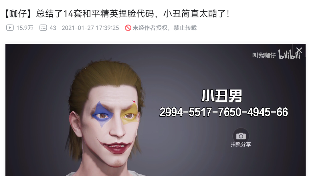 还是以《和平精英》与DC的联动为例,它的热度并非“无根之水”,早在4年前就有因为“捏脸功能”而诞生的“小丑妆容热”,之后3年前“怪诞乔克”的小丑面具也火爆整个游戏,其套装中的“红鼻子”至今都是人气最高的脸部饰品之一。