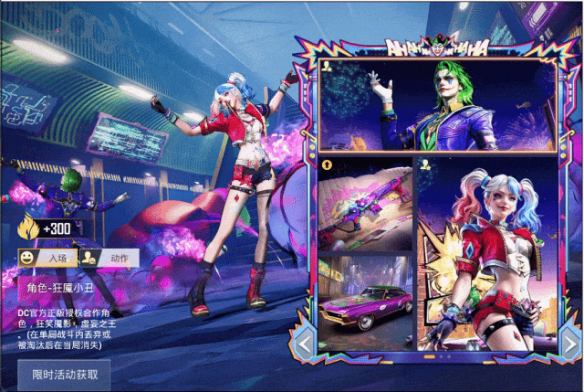 在多部作品中,小丑与哈莉·奎茵的关系有些复杂,大家知道哈莉·奎茵为爱疯狂走入了小丑的内心,但又有片段呈现了两者原因不清的分手,哈莉·奎茵为摆脱“小丑女”标签走向自我救赎。而在《和平精英》联动内容中,我们似乎能找到一个“新脉络”。