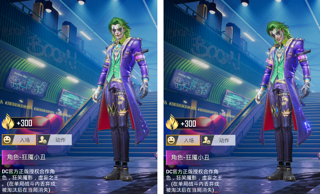 在我之前的构想中,这次联动的初步设计稿起码要掏出至少七八个不同版本才能让DC满意,然而《和平精英》策划的回答大相庭径,“我们在小丑的设计思路上跟DC几乎是一拍即合的,IP方在我们的设计稿上基本只根据人设调整了一些图案和色彩细节”。