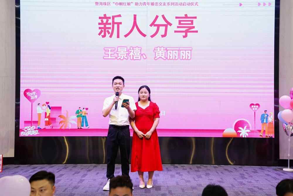 本次活动邀请了一对新人王景禧、黄丽丽分享了他们甜蜜的爱情故事。经历了疫情支援、乡村振兴帮扶异地工作等诸多考验,两人始终相互支持、牵挂,今年5月21日,这对新人领证结婚,从“网友”成为“战友”,用坚守与陪伴诠释了爱情的甜蜜与力量,让现场青年感受到爱情的美好。