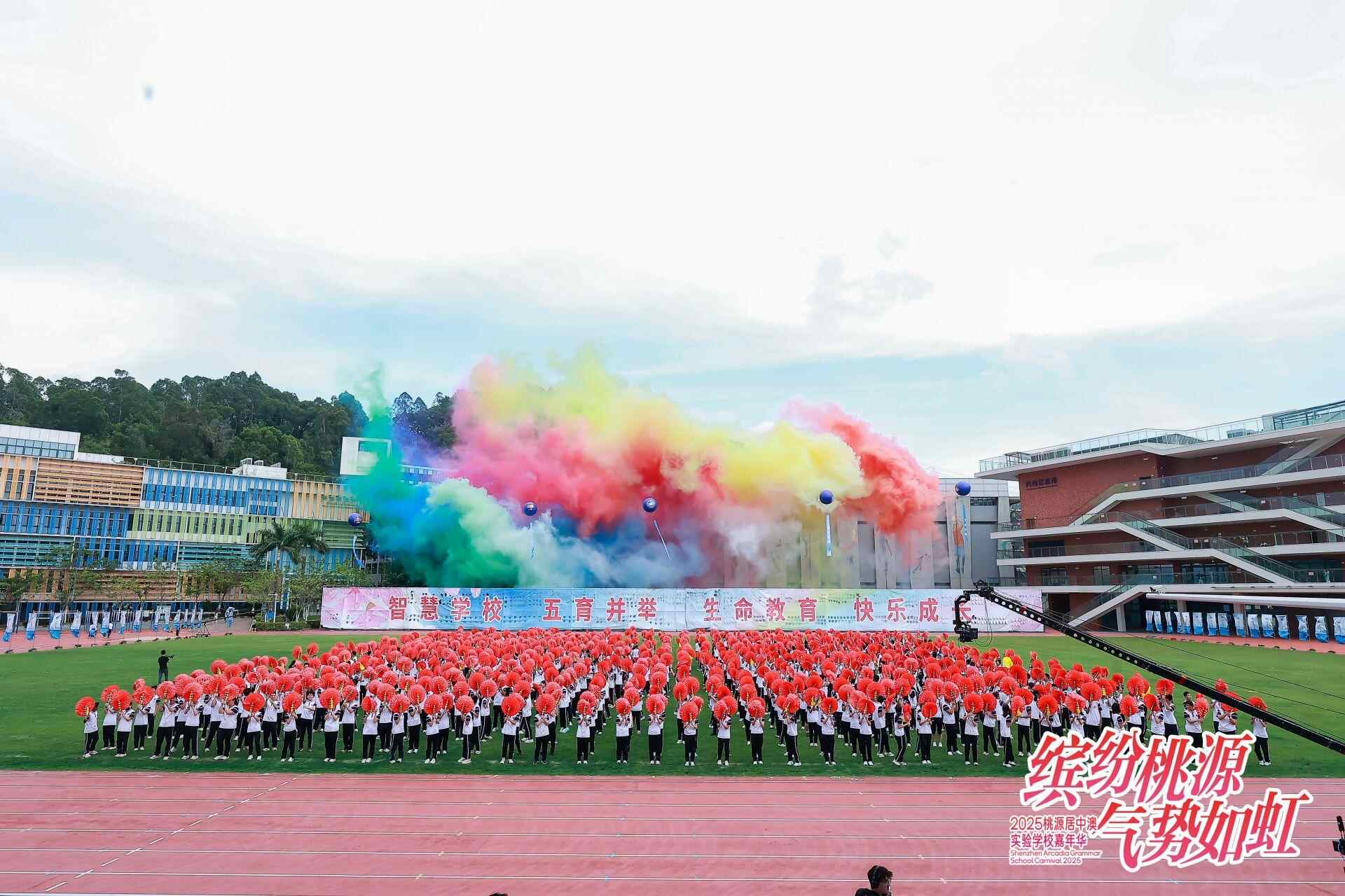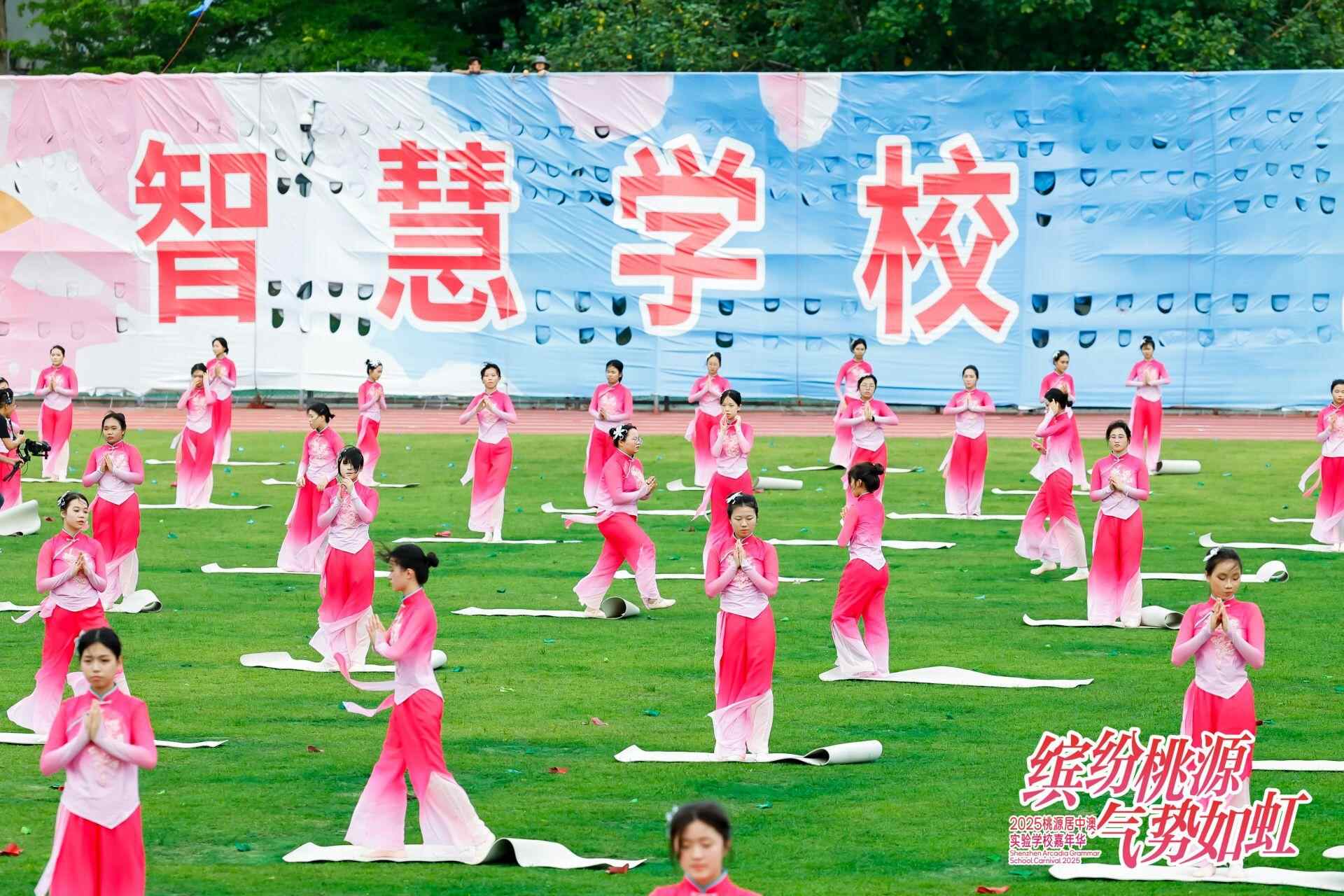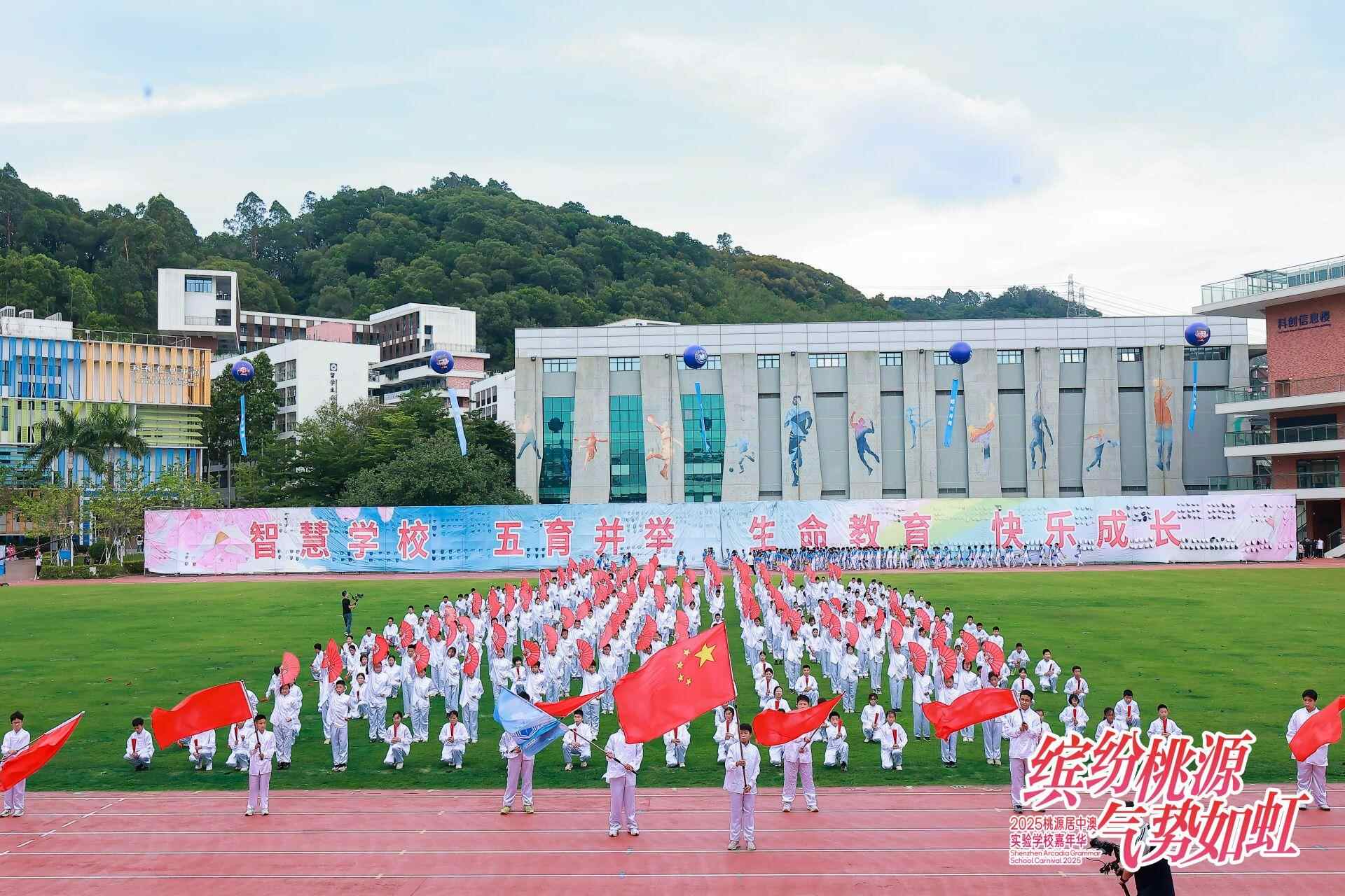 在绿草如茵的大操场上,千人团队进行大型团体操表演,气势磅礴的宏大场面、整齐划一的动作招式、设计新颖的造型变换、积极向上的精神风貌,给观众带来了空前的视听体验,让人震撼不已……5月21日下午,以“缤纷桃源,气势如虹”为主题,超过4000名师生参加演出的中澳实验学校2025年嘉年华系列活动开幕式精彩上演。