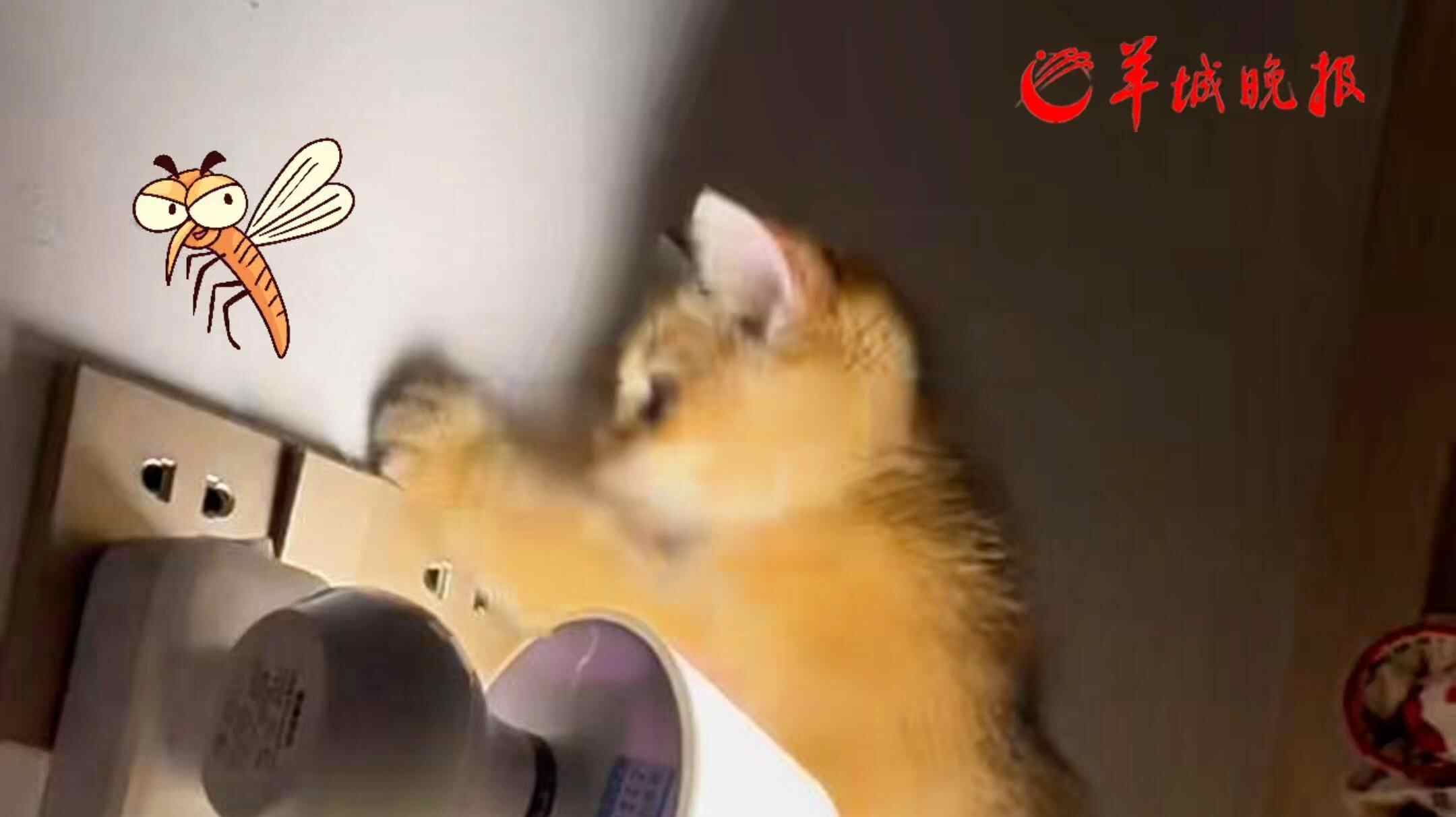 一拍一个准!小猫晚上不睡觉打蚊子