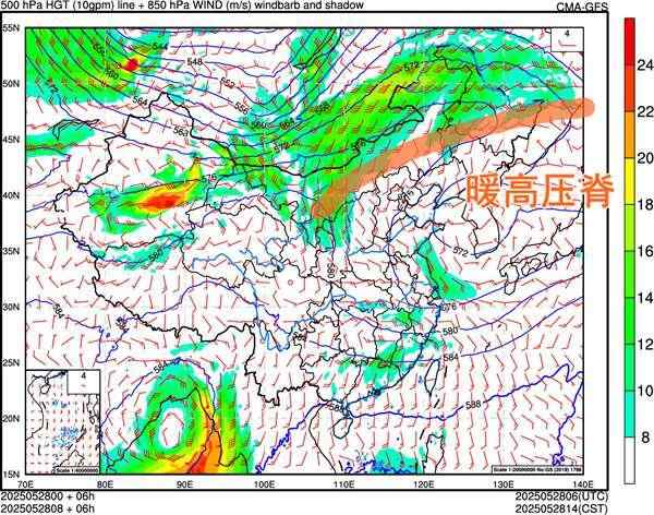 我在江南穿长袖,你在北极村穿短袖。气温南北差异如此离谱,主要是因为内蒙古北部至东北地区受一个暖高压脊控制,天气晴热,并且未来三天都将维持暖热趋势。