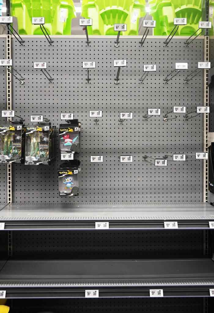这是5月21日在美国加利福尼亚州旧金山湾区圣莱安德罗的一家沃尔玛超市拍摄的空荡的玩具货架。新华社记者 吴晓凌 摄