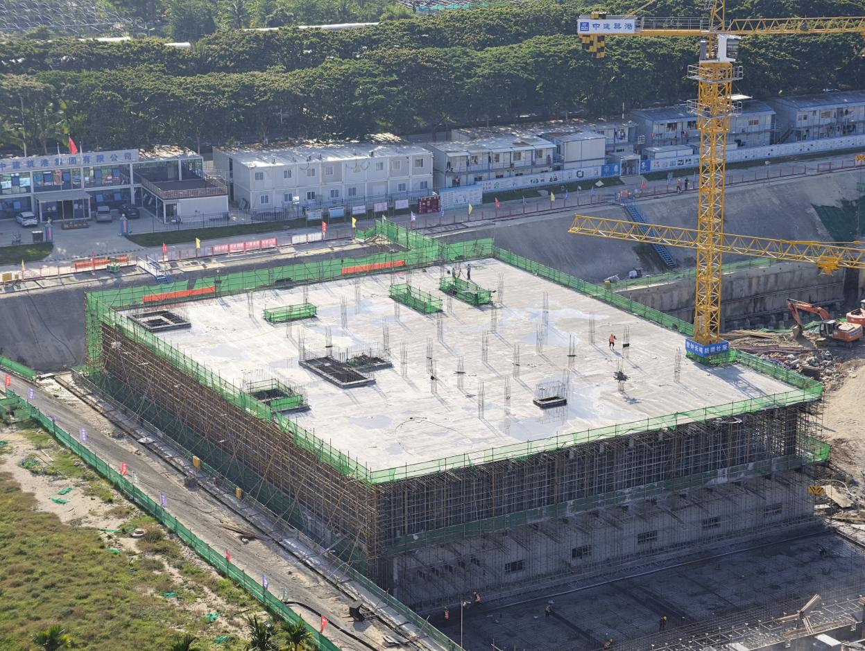 据中建筑港项目负责人孔德宝介绍,本项目作为三亚市首座全地埋式污水处理厂,项目部采用分区建设模式保障建设进度,九号区域为首个完成主体结构建设的区域,九号区域主体结构共涉及3个池体,建设面积约7800平方米。项目预计7月底完成剩余主体结构施工。