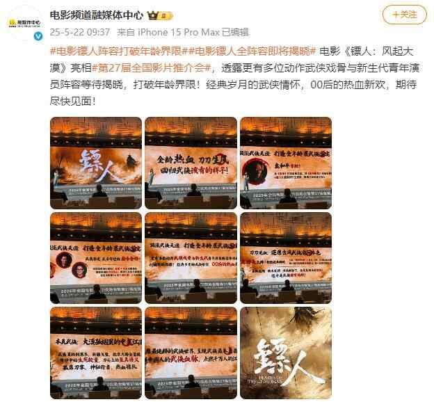 5月22日,据@电影频道融媒体中心,由袁和平执导,吴京监制并领衔主演的电影《镖人:风起大漠》在第27届全国影片推介会上官宣主演谢霆锋、李连杰。