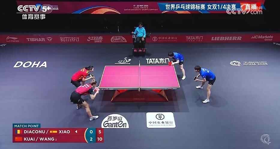 2025多哈世乒赛女双1/4决赛,王曼昱/蒯曼3-0战胜迪亚克努/肖瑶茜,晋级四强! 三局比分为11-7、11-9、11-6。