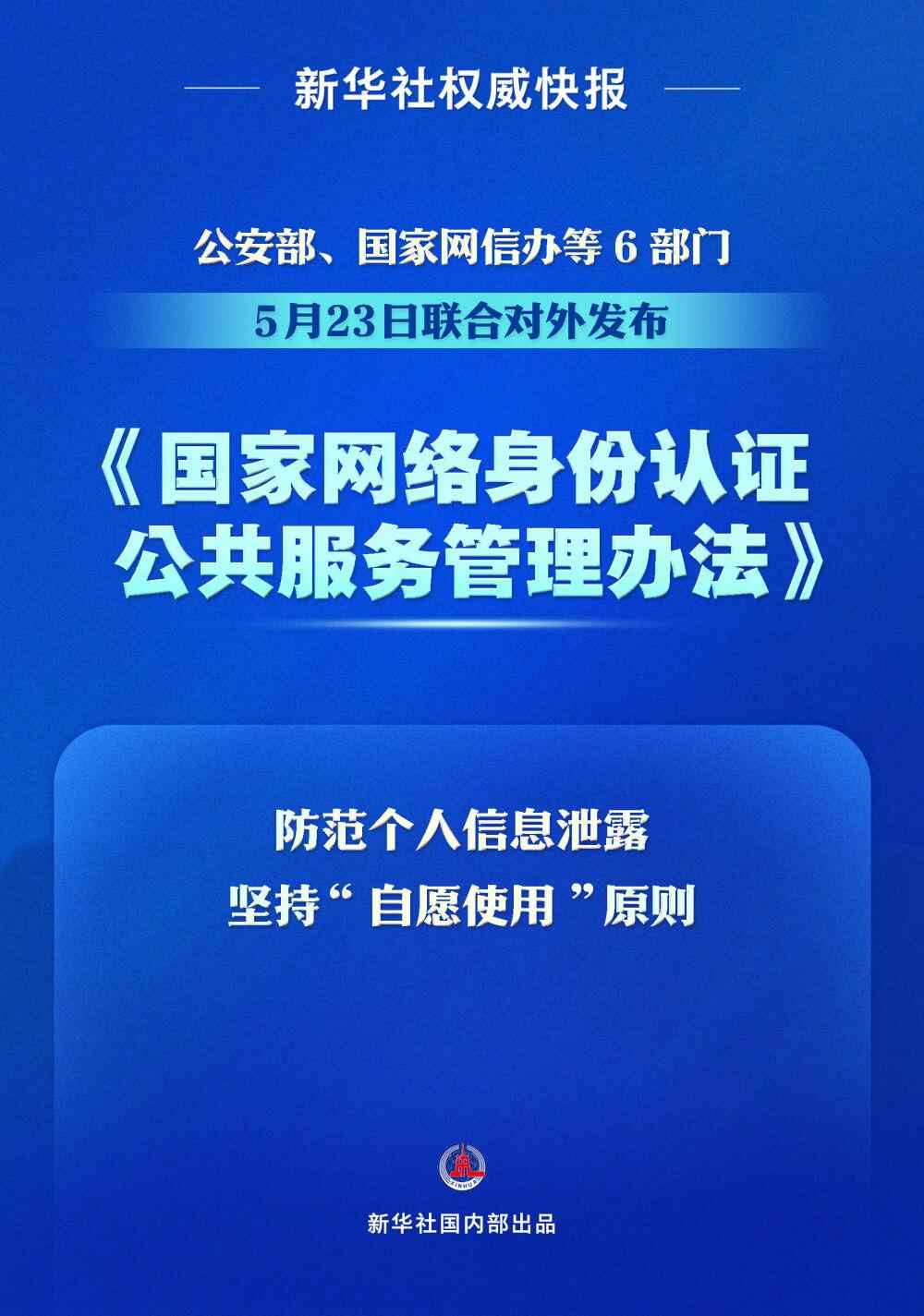 公安部、国家网信办等6部门5月23日联合对外发布《国家网络身份认证公共服务管理办法》,自2025年7月15日起施行。