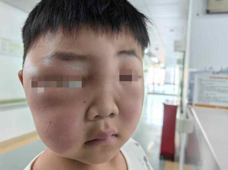据介绍,一天晚上洋洋早早进入梦乡,突然感到脸颊一阵刺痛,像是被什么东西狠狠叮了一口,半梦半醒间,洋洋下意识地拍了拍脸颊,赶走了“不速之客”,随后又迷迷糊糊地睡了过去。没想到第二天早上起床后,洋洋右面部出现了红肿伴刺痛,父母看到后赶紧带洋洋到当地医院治疗,治疗了一天后洋洋脸部的肿胀非但没有消退,反而愈发严重,全身也出现了红色皮疹伴剧烈瘙痒并出现了高热,眼睛被肿胀的眼皮挤成了一条缝,此时的五官变得面目全非。