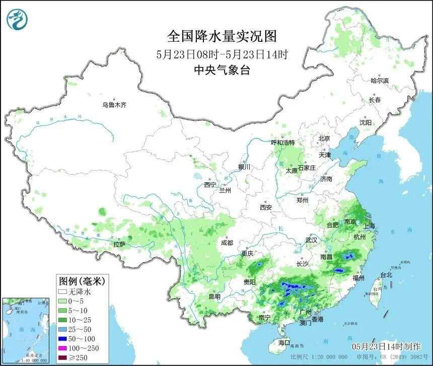 今天白天,南方的强降雨整体东移南压,主要集中在湖南南部、广西中东部、广东、福建西北部等地,局地6小时累计降水量超过50毫米。不仅如此,上述多地还出现了短时强降雨,局部雨势十分猛烈。