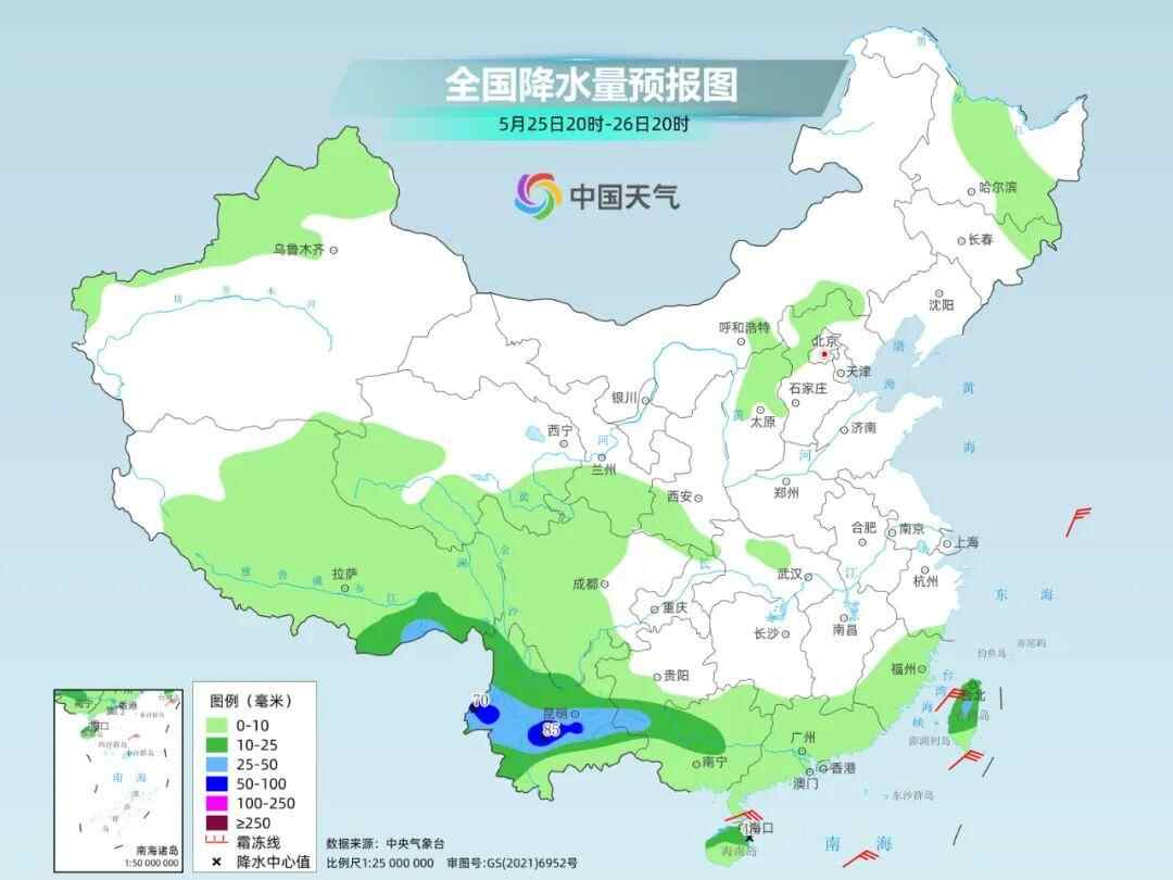 25日至26日,江南及其以北大部地区雨水都将“暂停营业”,华南地区也多以小雨为主。需要注意的是,受到副热带高压西进北抬的影响,未来三天,云南一带将会出现中到大雨,局地可能会现暴雨。