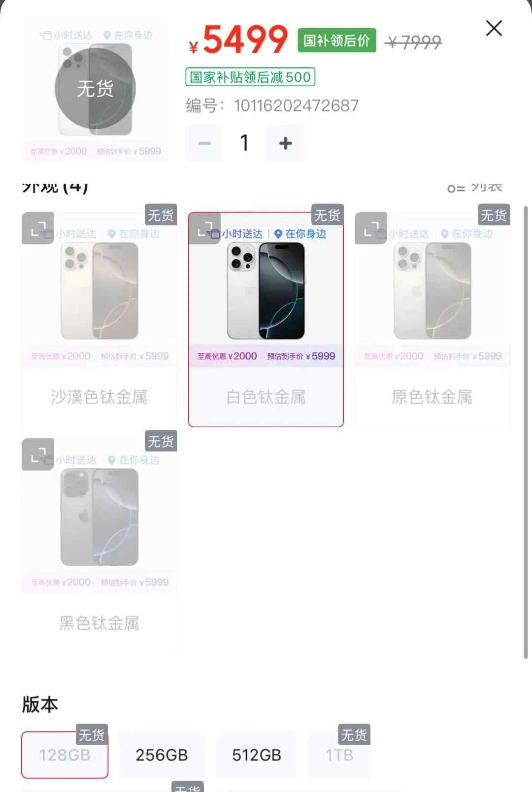 据天猫Apple Store官方旗舰店,5月16日20点起,iPhone 16 Pro 128GB在叠加国补和多种优惠之后,到手价5499元,较原价减少了2500元,降幅最大高达31%。