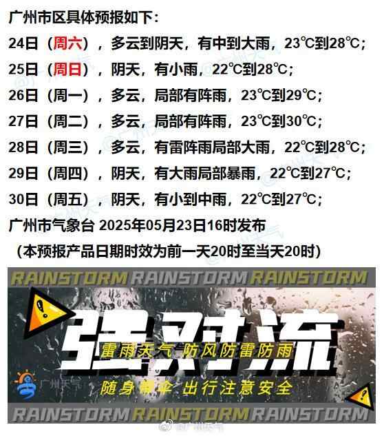 广州方面,预计24日白天起雨势减弱,以阵雨为主。