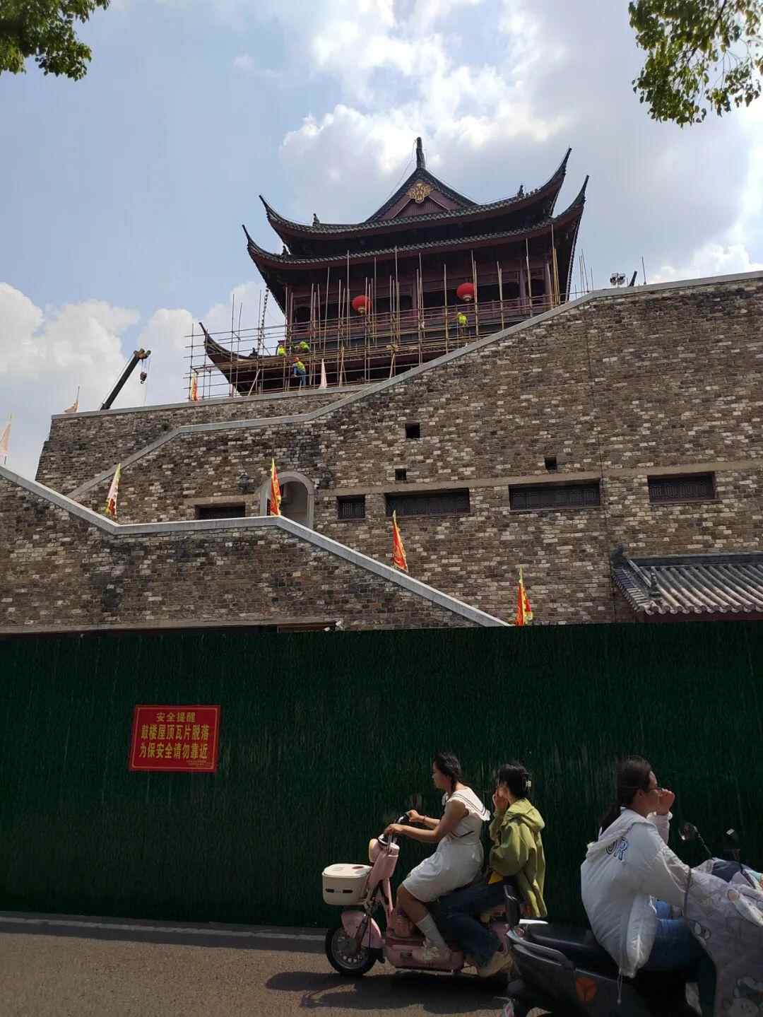 5月21日下午,记者在事发现场看到,凤阳鼓楼四周均已安装了绿色围挡,凤阳县文化和旅游局在围挡上张贴了多处红色“安全提醒”,其中写道“鼓楼屋顶瓦片脱落,为保安全请勿靠近”。