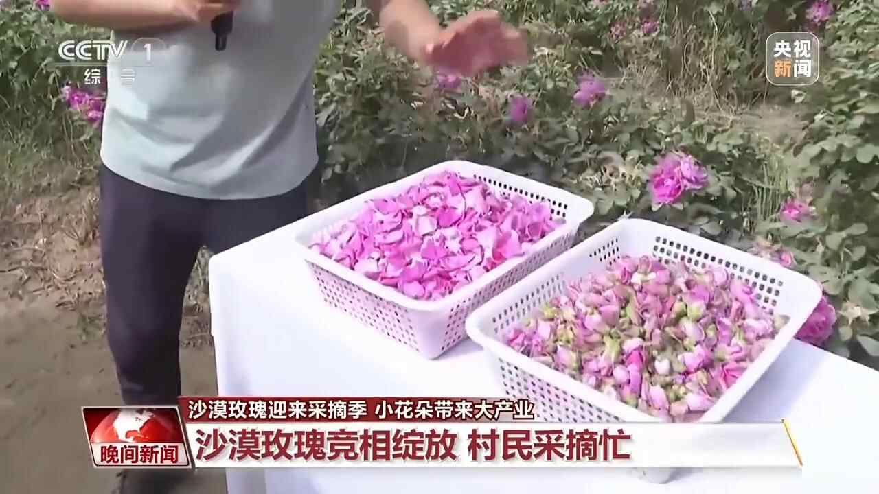 在这里,玫瑰不仅是防风固沙的“生态卫士”,也是助农增收的“致富花”。眼下,7万余亩玫瑰花迎来采摘季。