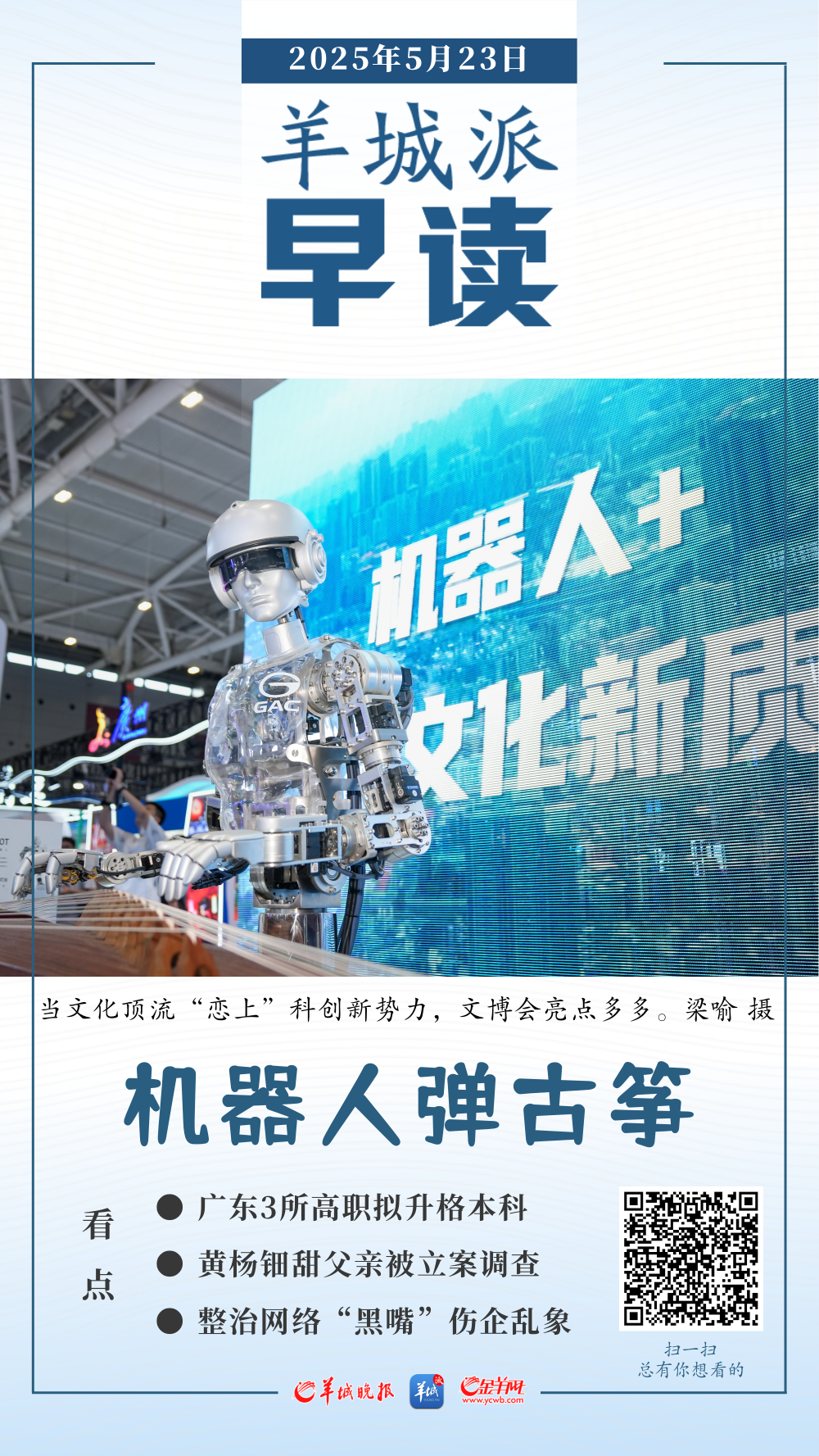 总成交额超16亿元!18个重点文化产业项目花落广东。详情-->全球首个“全尺寸类人身高”人形机器人格斗赛将落地广东。详情-->粤产“文小博”首次亮相文博会,打造“好用的AI”。详情-->